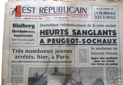 On cite Cohn-Bendit, Kouchner, Geismar mais jamais ces deux ouvriers de Peugeot morts le 11 juin 68, au cours d’affrontements violents entre CRS et ouvriers à Sochaux.