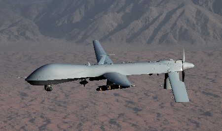 (photo : drone américain MQ-1 Predator, par le Lieutenant Colonel Leslie Pratt de l’U.S. Air Force)